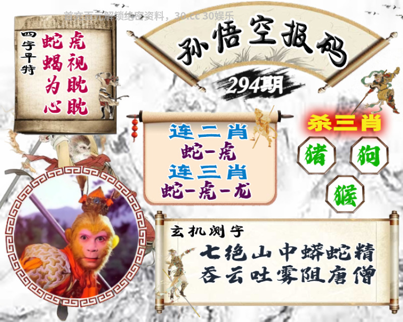 295期推荐⑨肖:猴龙狗蛇兔马鸡羊